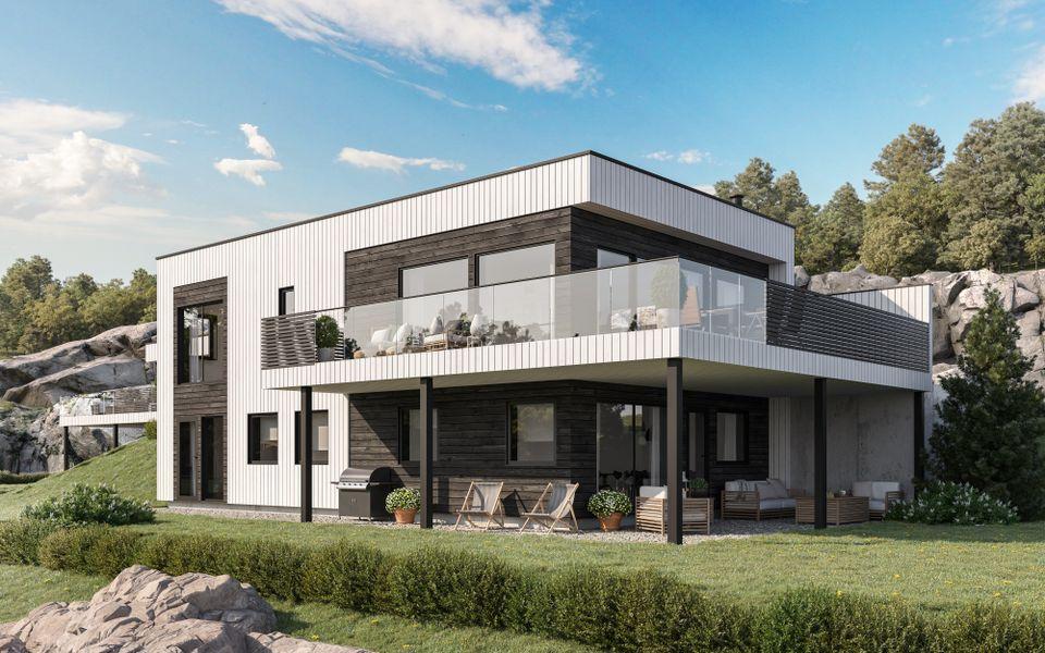 Ved behov leverer vi også illustrasjoner som gir et realistisk og trygt beslutningsgrunnlag. Vi kan vise materialvalg, riktig farge på veggene, plassering i terreng og helhetlig uttrykk slik at du får et tydelig bilde av resultatet før noe bygges